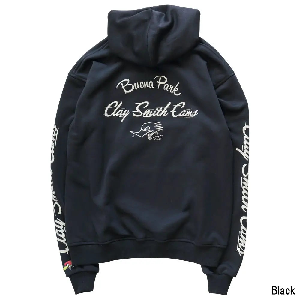 A basic pullover fleece-lined hoodie. A versatile autumn/winter staple with a monochrome design. A colourful logo is embroidered on the sleeve.